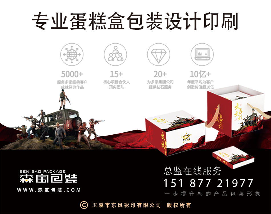 玉溪市东风彩印有限公司烘焙设计项目组是一个集饼店蛋糕包装设计、为一体的高端品牌整合设计印刷团队。蛋糕盒设计项目组为饼店提供蛋糕盒方案。三件套蛋糕盒,手提一体蛋糕盒,蛋糕单方体盒,蛋糕翻糖蛋糕盒,芭比蛋糕盒,双弧西点盒,透明蛋糕盒,圆形蛋糕盒,设计印刷。凭借着专业的项目策划设计印刷水准、敏锐的市场嗅觉和丰富的品牌营销经验,经过二十几年的风雨历练,粹聚全球精英,以专业的精神和品质立足云南二十几载,助力客户取得非凡的业绩,至今已发展成为全国最具规模和影响力的印刷战略者之一。战略合作伙伴来自国际4A,有新加坡、香港、深圳等优势经验, 将提供最适合您的服务。联系电话:15187721977